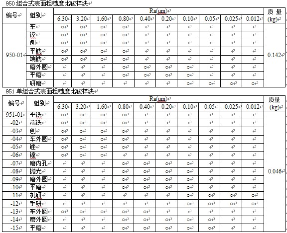 950組合式表面粗糙度比較樣塊,表面粗糙度比較樣塊是用比較法檢查零件表面粗糙度的一種量具,在機械工業(yè)生產(chǎn)中得到廣泛的應(yīng)用。符合GB標(biāo)準(zhǔn)。